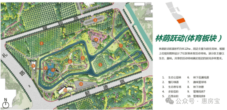嵌入人性化和生态化的设施,激活场地引人入园,构建市民休闲化的游憩绿地。