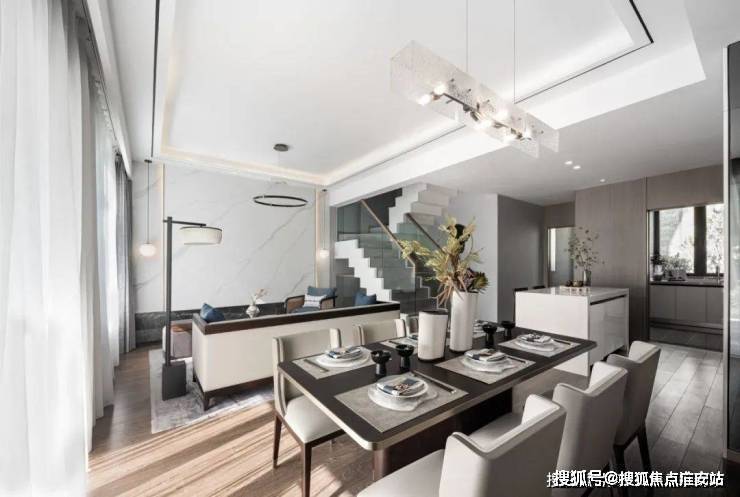 约135㎡观景下叠采用大面积玻璃连通客厅与庭院,同时通过阳台与阔尺窗户,真正做到引景入室。