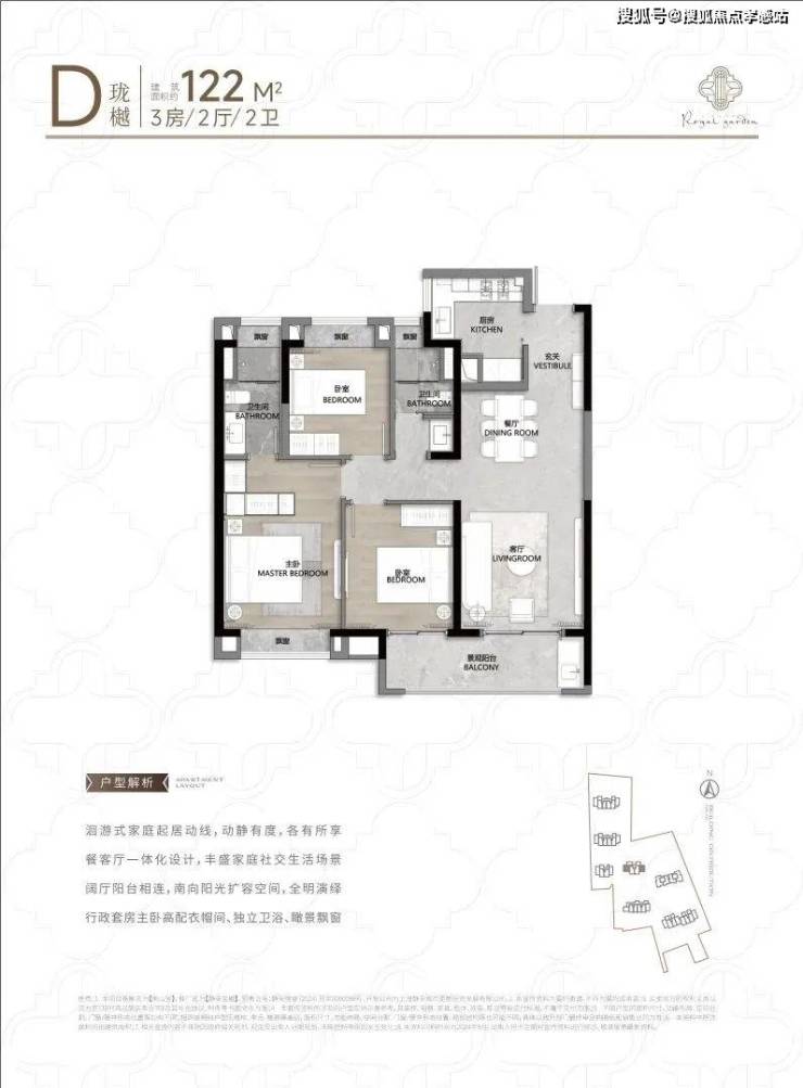 104㎡3户型特点:静安玺樾售楼处预约热线☎:400-8080-420✅✅该户型多为楼栋的东边套,是一个观景户型。客厅连接270°阳台,视野出众。双卧朝南,阳光满溢。从次卫布局看,如果家庭人口较少,该户型还能做成双套卧。