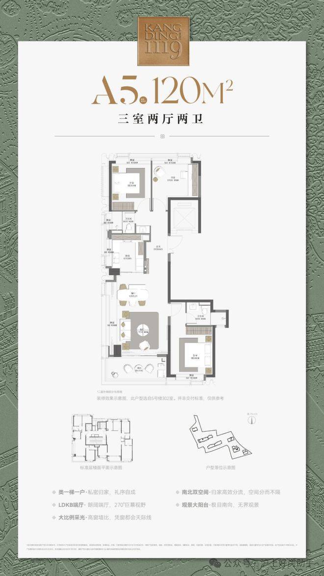 建面约120㎡3房2厅2卫▼