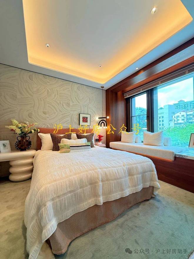 转角主卧景观:主卧依然实现了再次升级,转角飘窗将每一个清晨,推窗见绿变成日常。