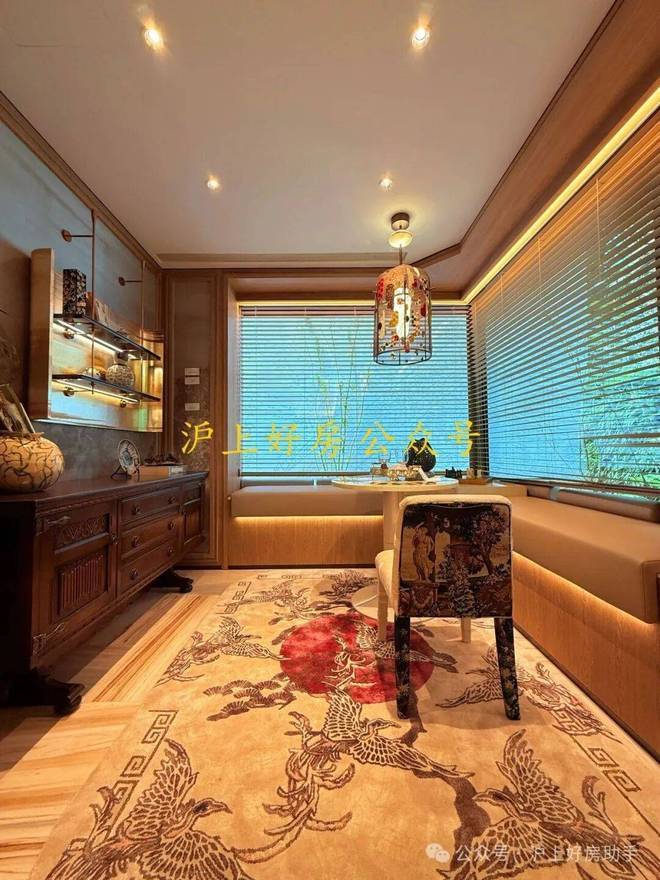 约17.2米环绕观景台:约238㎡户型的客餐厅,位于户型的顶端。自东向南环绕270度的观景台长达约17.2米,在这样的客厅,甚至可以踱步欣赏窗外的满眼梧桐。独立会客厅,可以做小茶室或棋牌,更深一步的隐私感,为专享客群定制。