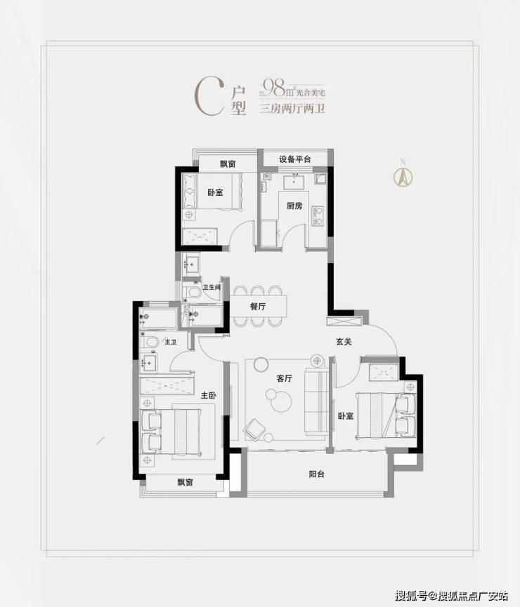 高层建面约98㎡3房2厅2卫