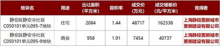 新静安地块0溢价成交,老静安地块163轮竞价才落槌,楼面价超11.4万/㎡。
