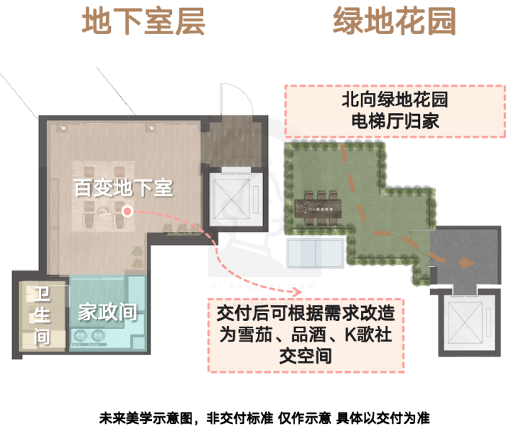 地下室百变空间,交付后可根据自身需求改造棋牌、工作室、品酒、健身空间……生活场景自由定义。