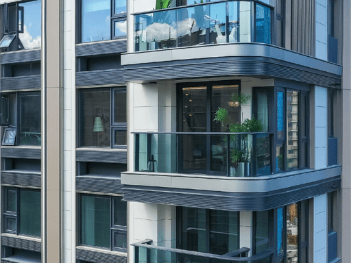 立面:现代简约,真石漆 + 石材 + 金属线条