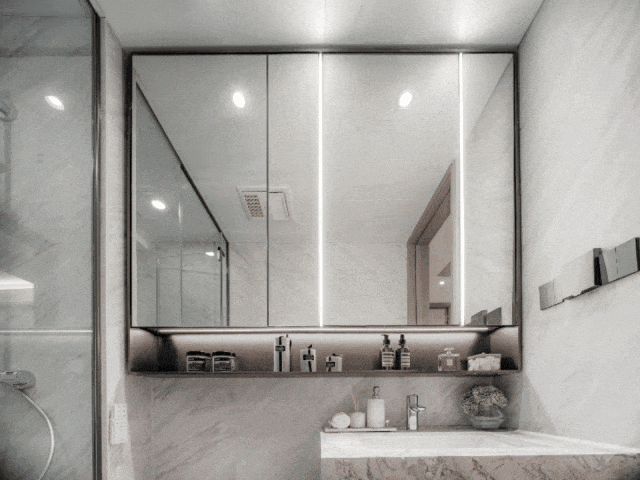 甚至还有定制瑧悦专属女生卫生间,为女主人精心打造了镜下收纳柜、金属收纳龛、侧面收纳龛等多个大进深收纳空间。