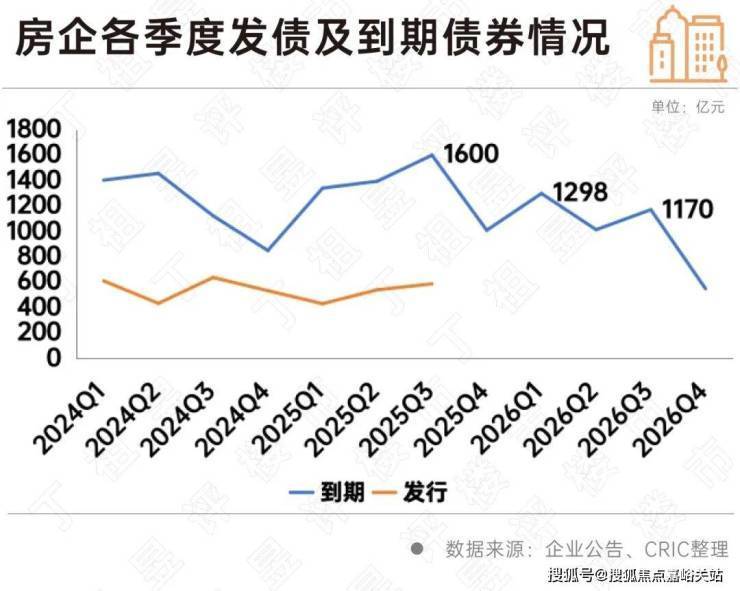从债务到期来看,2024年房企债券到期规模达4829亿,而发行规模仅有2209亿,房企无法通过借新还旧覆盖到期债务。此外由于近年来不少房企选择将债务展期或置换,在此背景下2025年房企的债务压力较大,2025年债务到期规模甚至要高于2024年,达5342亿元;其中2025年第三季度是偿债高峰,到期规模约1600亿元。由于近年来,房企债券发行规模下滑明显,2026年房企整体的债务到期规模也明显下降,其中2026年一季度到期约1298亿,三季度到期1170亿。
