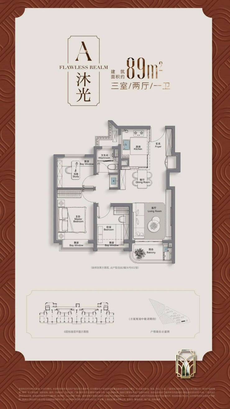 建面约103㎡的3房在建面约89㎡的3房基础上做了进阶,3房2卫的设计保证了主人从二人世界到三胎生活的全生命周期需求。
