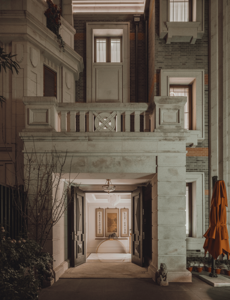 地上三层、地下两层的别墅。从建筑风格看,承扬老城厢的海派建筑风貌,重塑里、坊、庭院的形式,拉近了人与人的距离,唤起了老上海人刻在基因里的念旧,又用现代的设计手法,极简的设计理念,把外立面做的干净利落,迎合当下审美。