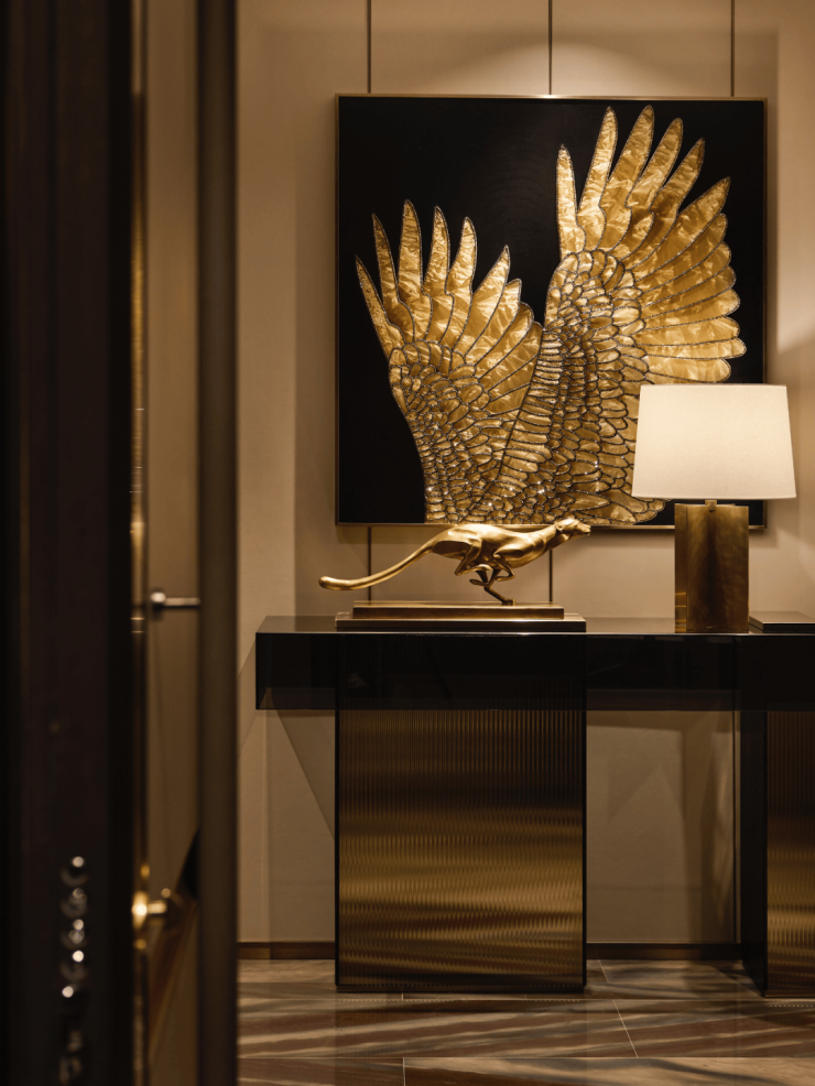 高端装修:项目户型高品质装修交付,汇聚国际塔尖品牌! 入户大门采用master/迪瑞装甲门,尽显尊仪阔达!
