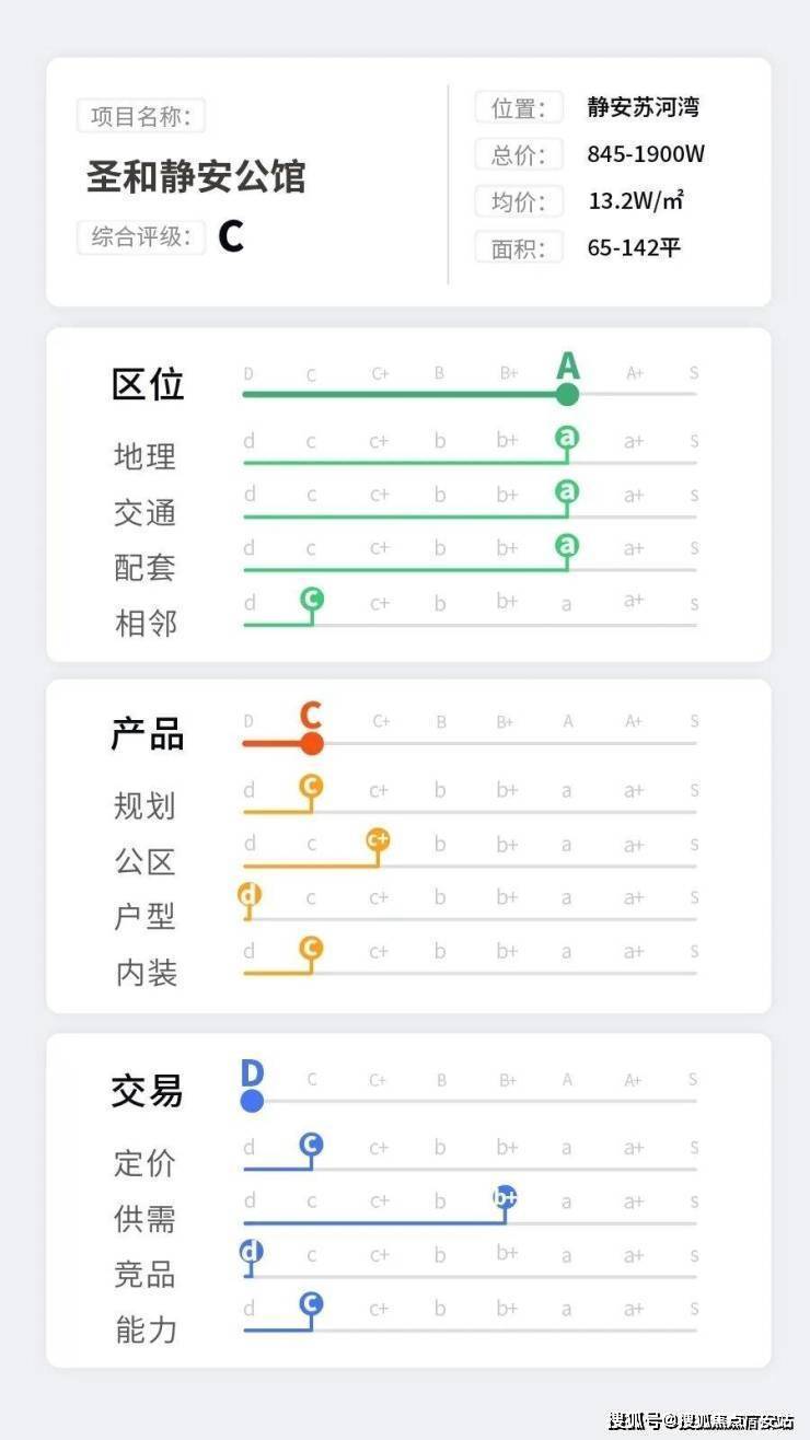 产品评级C。其中规划c,公区c+,户型d,内装c。