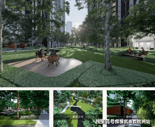 此外,项目 绿化率约为35% ,融汇“大自然编织”理念,入口庭院、叠水、朴树林、雾色之河、特色山丘、林荫步道等特色景观,注重强调环境功能的实用性以及居住者的互动体验。据介绍,其中植被选取了广玉兰、晚樱、女贞、枫香等几十余种苗木,着力打造自然浪漫的城市庭院。