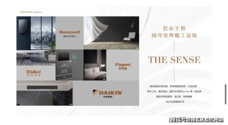 全屋装标标配一线品牌全屋智慧系统,德国旭格门窗、霍尼韦尔新风(E\F户型)、威能全屋地暖、罗格朗智能家居等。