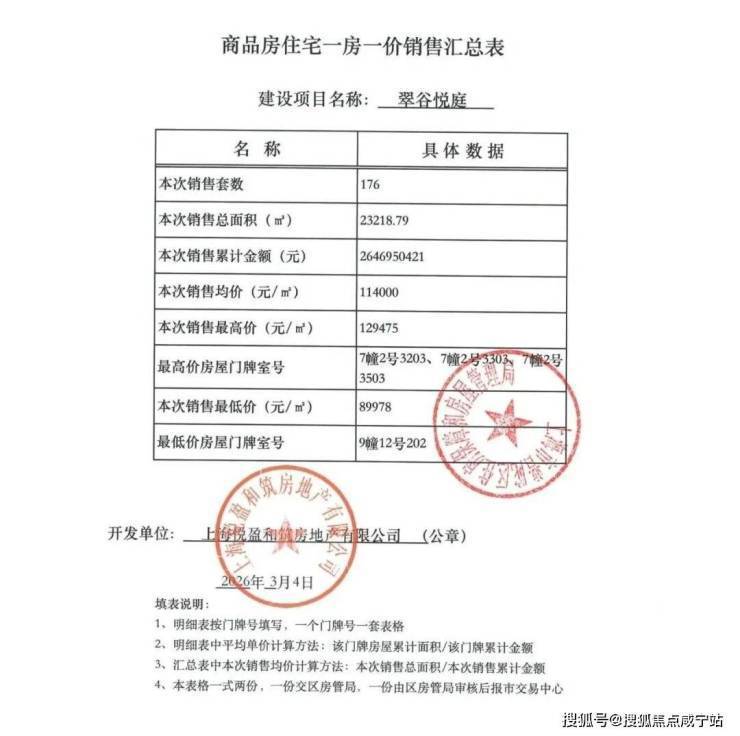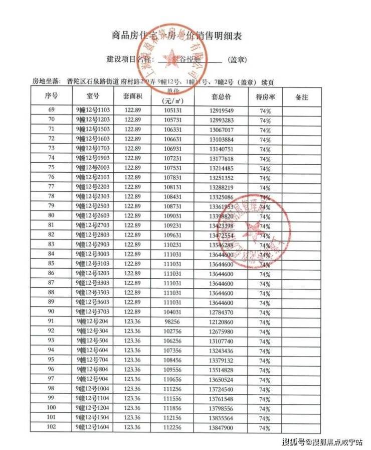 一房一价表已经公示: