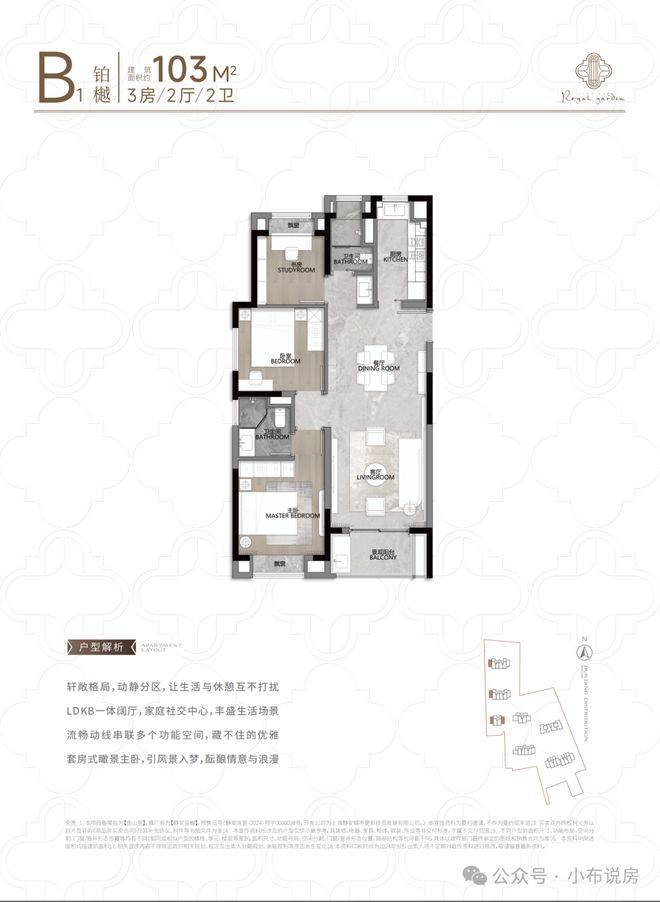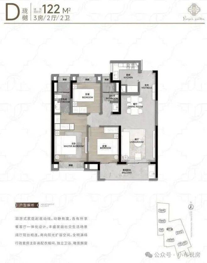 动静分离+客餐厅一体化设计,功能区和休息区互不干扰,客餐厅、厨房等公共活动区集中在一侧,卧室等休息区全部一侧,保证了私密性!