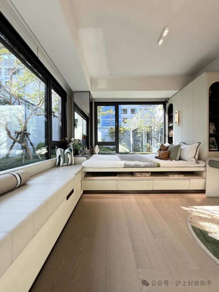 四开间朝南,南向超宽尺度,让空间底色被窗外景色点缀。