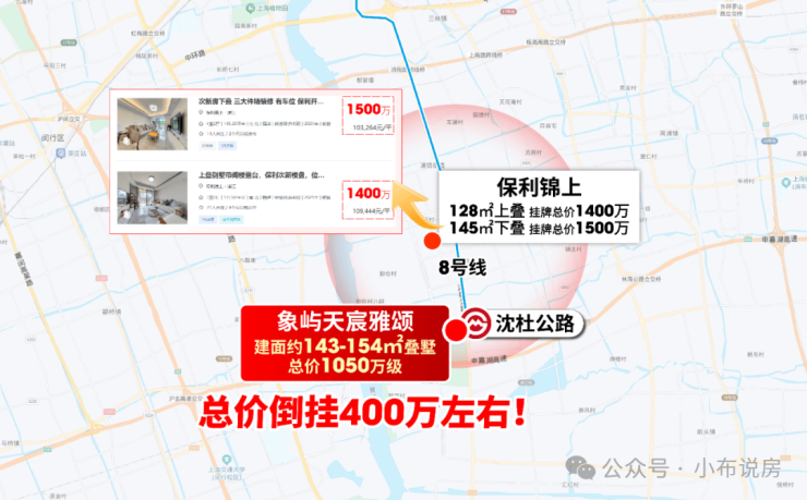 据链家网显示,项目旁边类似的轨交墅保利锦上项目,二手的上叠要1400万,下叠要1500万!