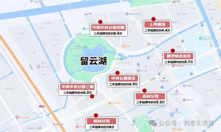比如南翔留云湖,一线湖景住宅基本都在6.5万以上,部分超过7万,非一线则在5.6万/㎡左右。
