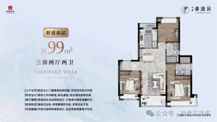 建面约99㎡3房2厅2卫,这是一个功能性和尺度感完美结合的明星户型。