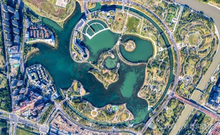 落日时可挽着爱人,一边漫步湖畔遛娃遛狗,一边看天边余霞成绮,湖中碎光点点,人与自然融为一体。
