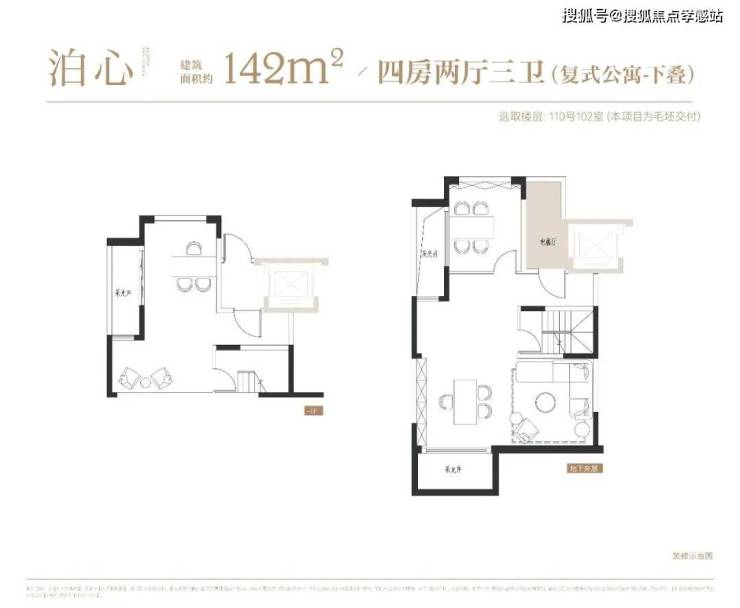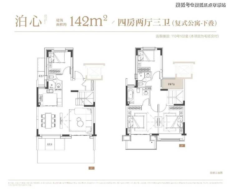 项目叠墅户型有建面约142㎡下叠,建面约139㎡上叠。