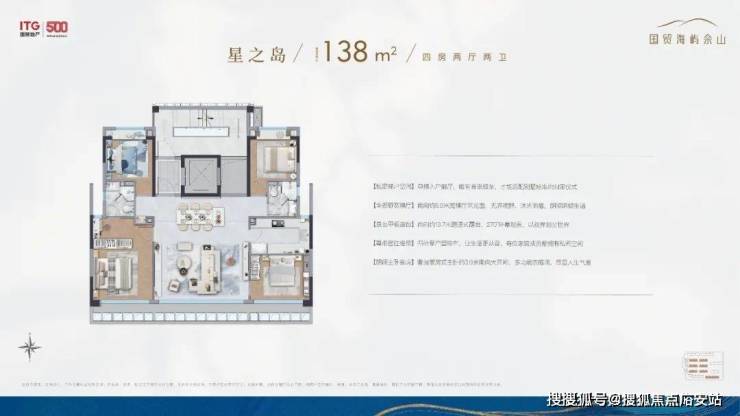 另外一方面,以滨海度假酒店的美学笔触,绘制“一心双轴双庭四境”海上森屿墅区。