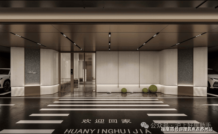 住宅的地下车库以“光影、质感”为设计理念,将其打造成一个充满艺术气息和自然韵味的空间。