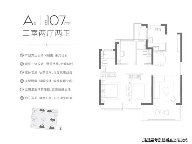 项目建面约107㎡户型集 LDBK一体化、玄关入户、动静分区设计于一体,在功能性与舒适度上几乎都做到了极致!