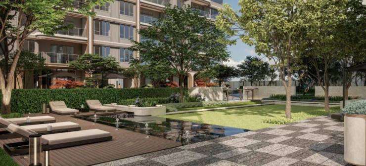 项目以围合式布局,打造“一轴四园”的景观格局,深入探讨艺术和生活的共鸣,打造一处“臻享生活艺术之美”的人居新风尚。同时与架空层联动,形成多功能空间场域,满足邻里会客、休憩、观景需求。