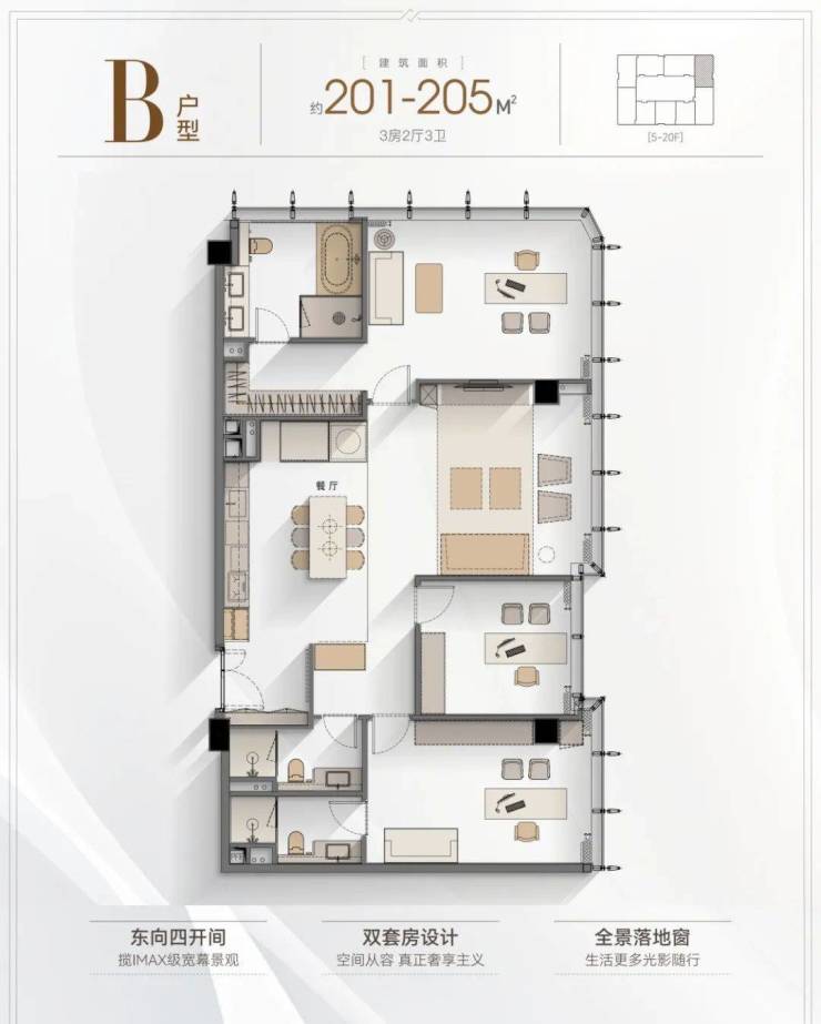 5️⃣户型优势:4.2米层高,全落地窗设计,多套房设计满足三代同堂