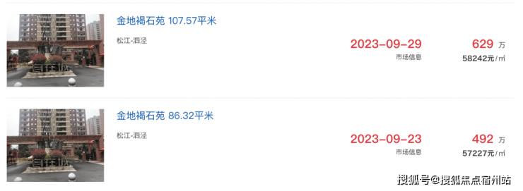 其他次新小区,比如泗泾大盘金地玺悦,二手房成交价也都在6.3-6.9万/㎡之间。