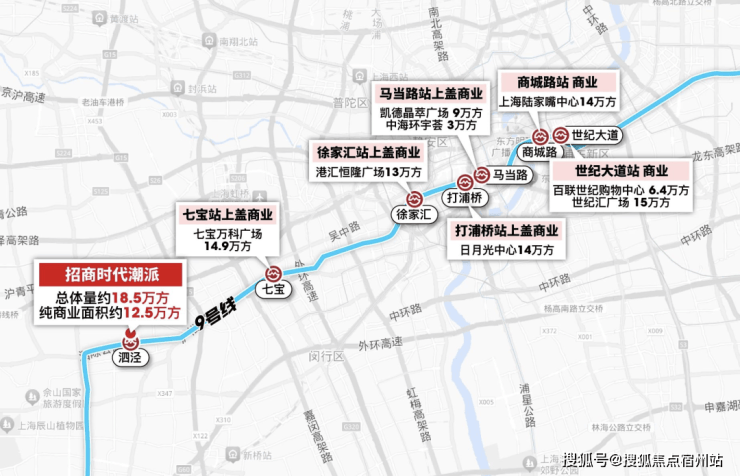 首先便是,作为9号线泗泾站新一代超级TOD,拥有着约 18.5万方 的商业,「招商时代潮派」与 地铁商场直线仅约200米! 更重要的是,它还拥有着 3站七宝、6站漕河泾、9站徐家汇 的强大通勤便捷度。这在全市500万能级的置业板块中,都称得上是顶尖的存在!