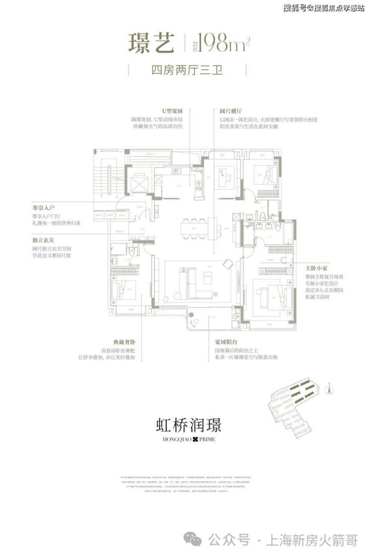 也正因为洋房产品的特质,不同于市场主流的两梯四户+消防连廊设计,华润置地虹桥润璟售楼处电话:400-8080-420☎☎ 在户型上采用了「无连廊设计」,全屋采光更好;