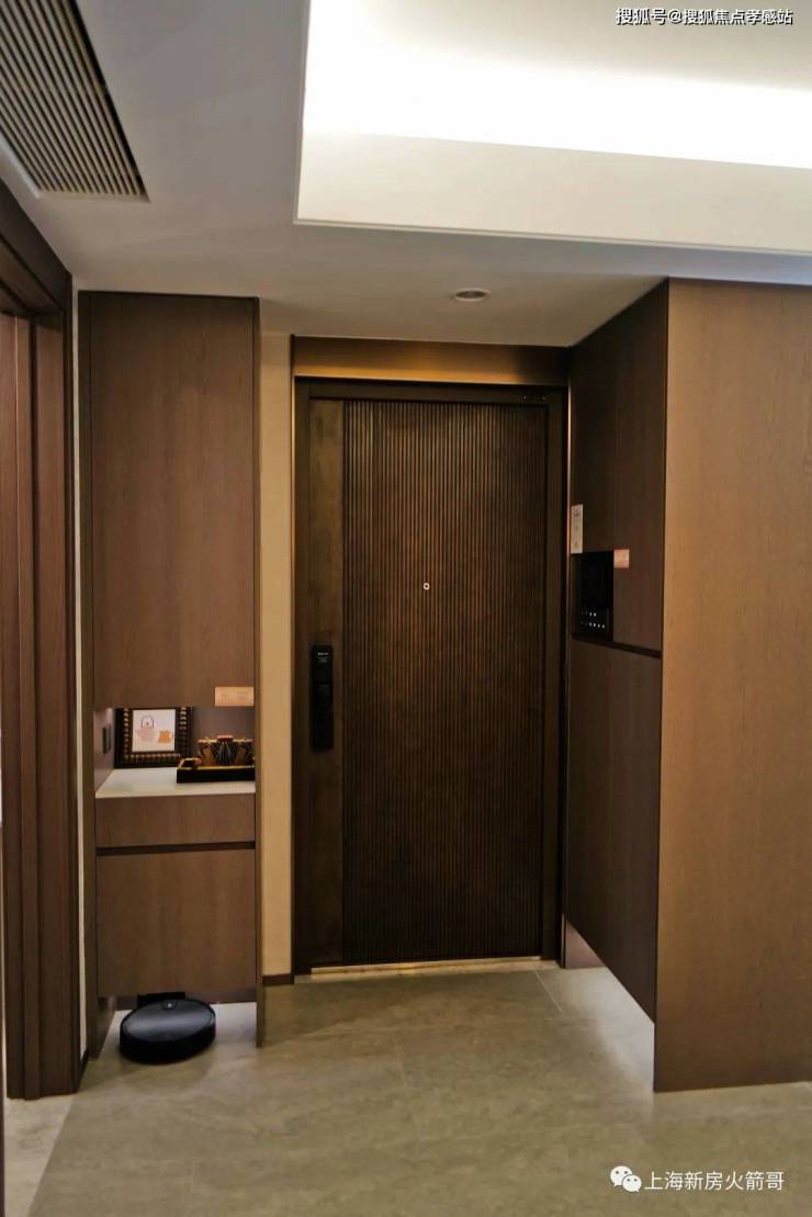 华润虹桥润璟售楼处电话:400-8080-420☎☎目前,项目实景示范区已经开放,入户大堂采用白沙米黄奢石+金属铝板的搭配,入户门采用电动开启: