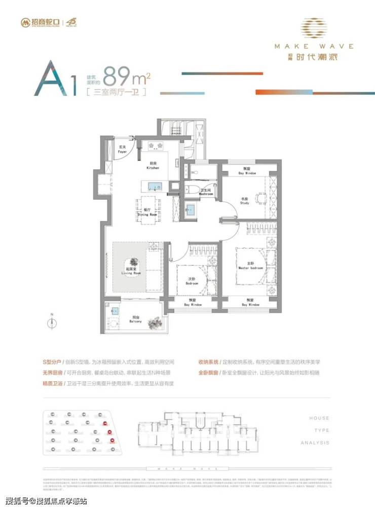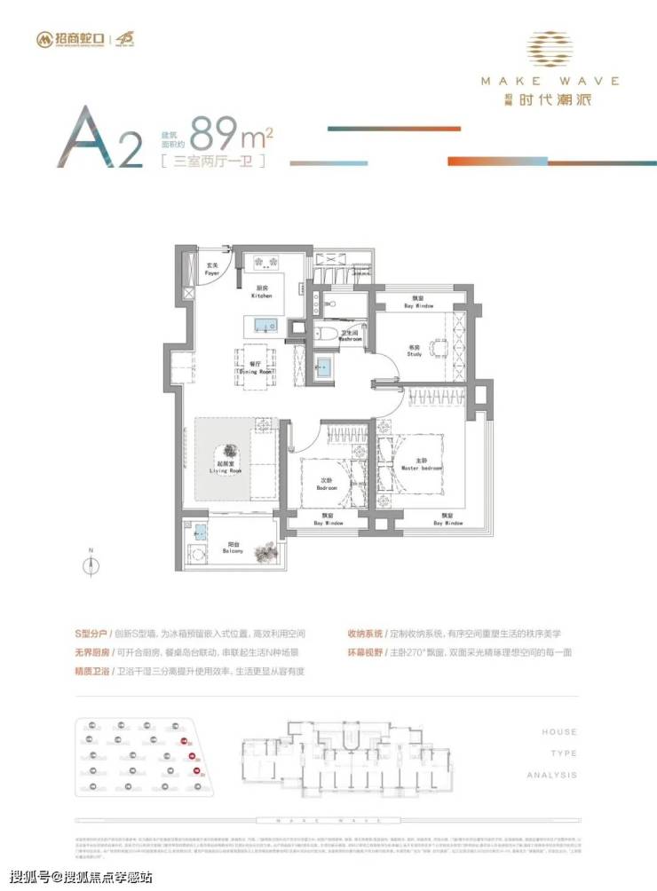 特别值得一提的是!项目约89平的三房,首付仅需约90万即可入手,真的非常适合事业刚起步的年轻人。在约89平三房边套户型中,这面270度的拐角飘窗吸引了很多人,这也是上海所有新房中能做到270度设计的户型中,起步总价更低的一个!
