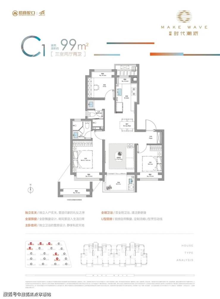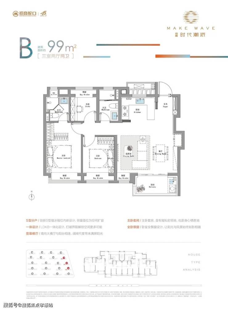 项目99平的户型,是项目的王炸主推户型,仅需约500万起即可上车。