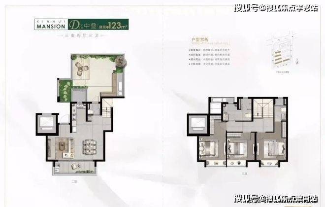 顶部可使用空间约44㎡(层高最高点2.3米),南北双露台