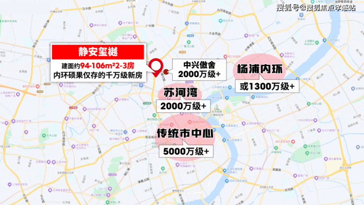传统市中心自不必说,5千万打底。静安玺樾所处的苏河湾板块目前主力总价超2000万,如果买距离更远的杨浦,也要1300万起步。别忘了,中小套型政策调整,未来市中心小户型供应将进一步缩减。