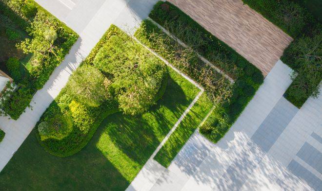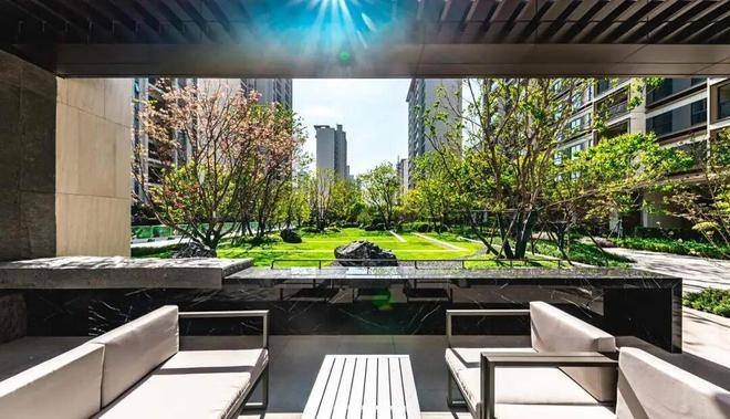 真石漆外立面在秋阳下泛着温暖的光泽,铝板线条勾勒出现代简约的轮廓,超宽楼间距让每户的采光都通透无界;
