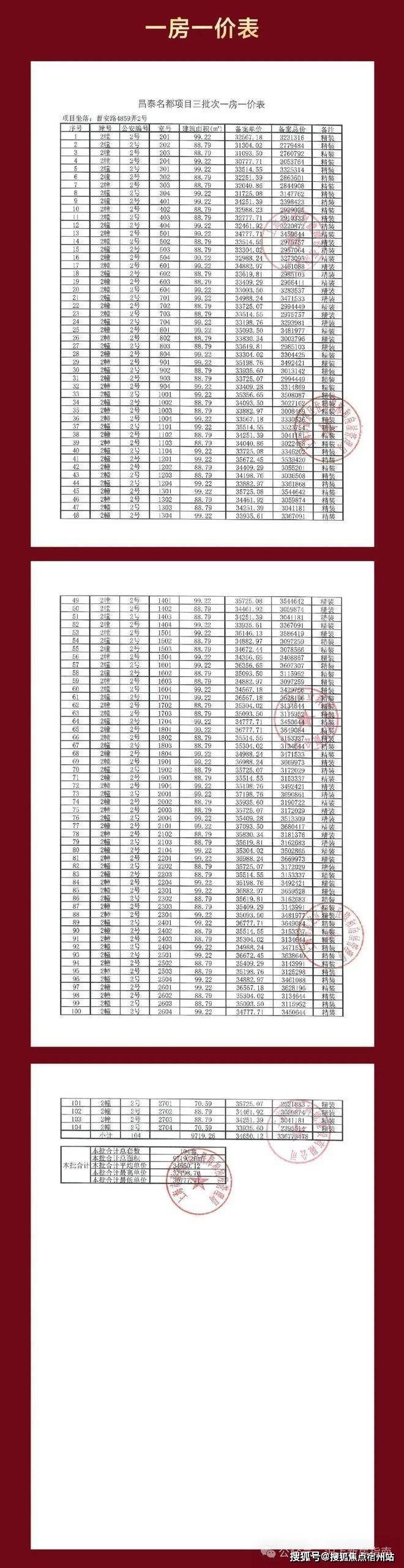 一房一价表