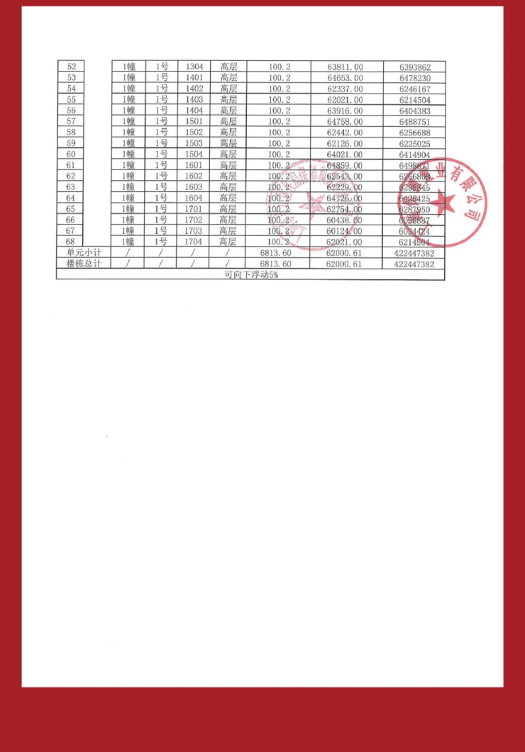 一房一价表: