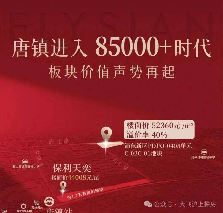 今年唐镇两次土拍溢价率都超过40%!距离地铁口1KM未来预期价格将飙升至9W/m²!而保利天奕前期均价仅8万+元/m²,质价比直接凸显百万!