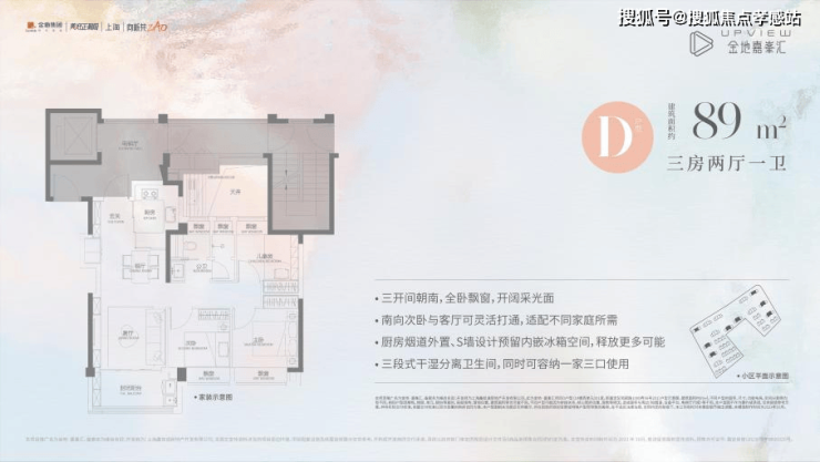 先来看看建面约89㎡三房两厅一卫(D户型),不仅功能完备,而且很好地把控了总价,约350万起即可上车高配品质三房,空间感十足!⫸⫸⫸金地嘉峯汇售楼处电话: 400-8787-740【已认证】⫷⫷⫷