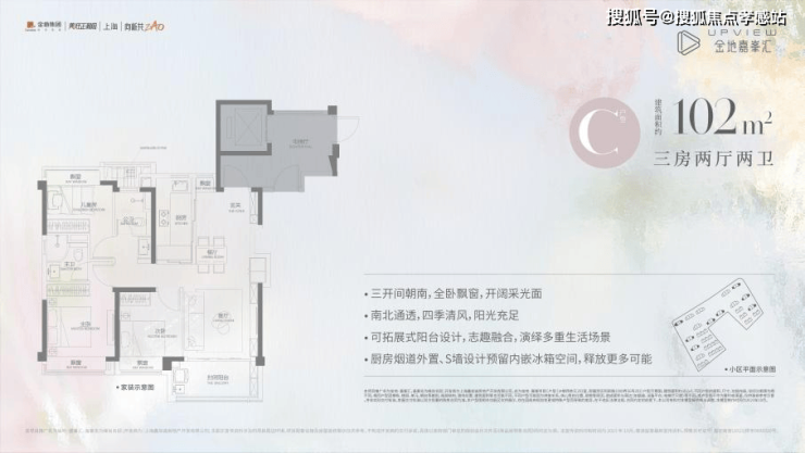 以及我们的建面约102㎡(C户型)三房两厅两卫,不仅保留了其小户型所有的优势,更增强了空间感和舒适度!