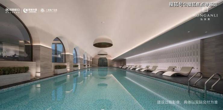 ⭐ 弘安里售楼处热线☎️☎️:400-9966-940✔✔整个泳池天花板,呈现出海派拱形元素,落地玻璃窗外,是下沉式的景观空间: