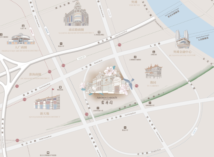2公里内涵盖人民广场、外滩、新天地、淮海路、陆家嘴等上海地标级商圈,一城繁华尽收囊中;未来,露香园外部借由黄浦“蓝绿丝带”规划,西接新天地,中部贯穿“大豫园片区”,东联外滩滨江地区。