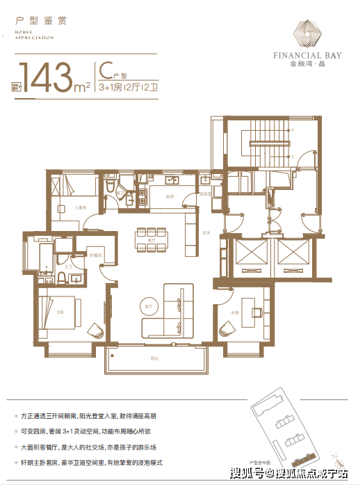 143㎡四房:L型转角窗+270°观景阳台,引景入室颠覆传统布局3;