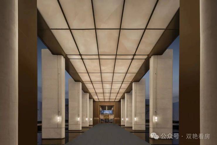 六重礼序,从门庭环岛落客的仪式,到迎宾楼的礼归,到精神游廊的情绪切换,到转换厅的空间变换,再到风雨连廊的闲庭信步,最后到酒店式入户大堂,层层递进的放松享受。
