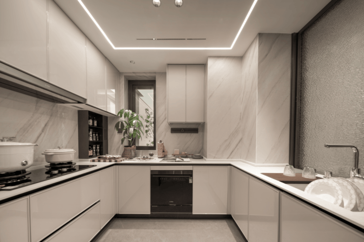 U型厨房设计,操作台面宽敞阔绰,即便两三个人同时做饭,空间感也绰绰有余!
